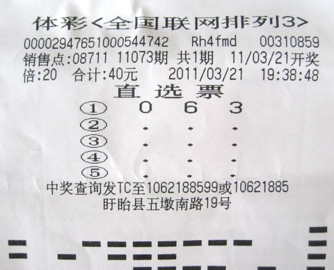他还表示,刚开始并不了解“排列3”,是在朋友及站点销售员的帮助下,才熟悉了“排列3”玩法。由于排列3玩法具有返奖率高、可倍投、选号容易等特点,让小刘很快就进入状态,时不时地中些小奖,也很快乐。小刘说一般倍投时看自我感觉,如果心里有感觉时,就采取数十倍的投注方法,但有时候自我感觉状态不好的时候,一般就是两倍投注。
