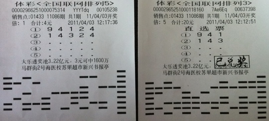 在中得“排列5”10万大奖的时候,如果可以再有“排列3”的奖金,那无疑是锦上添花。南京彩民张先生就在4月3日晚同时收获了这两种玩法的大奖,奖金总额10.5万。