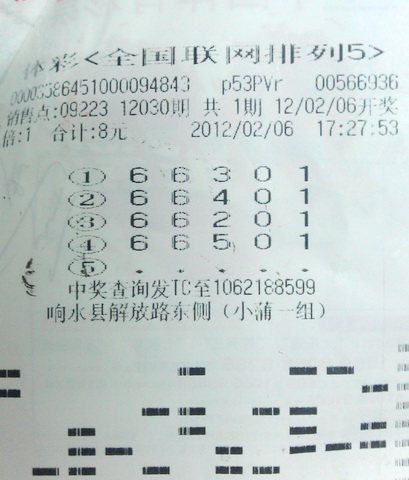 响水县专管员一早就接到09223站点王老板的报喜电话,说自己站点中了4注前一天晚上开出的排列5。专管员随即赶到该站点,在投注机上查证了此消息,第30期全省中出的4注排列5均为响水县09223站点所中。