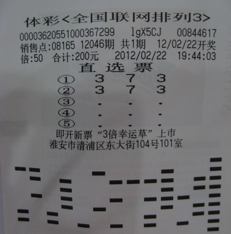 2月22日晚,体彩排列3玩法第12046期开奖号码为“3 7 3”,位于淮安市清浦区东大街104号的08165站点喜中当期直选100注,这100注均出自彩民老吴(化名)一人之手,他获得奖金10万元。