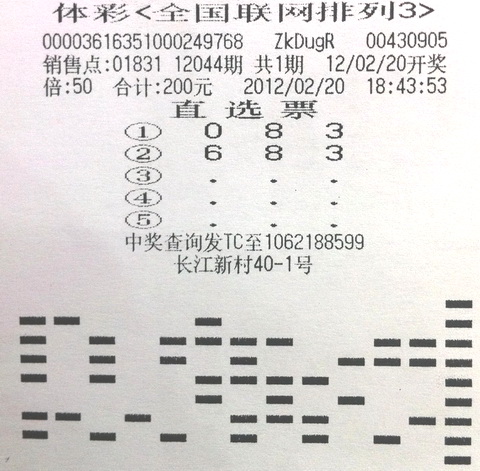 之后,这位彩民一边走一边还在想排列3的投注号码,觉得583这个号码也不错,所以路过黑龙江路16号-9的01828体彩站点时,和之前两个号码一起倍投了25倍。“看着这三个号码,我又觉得感觉不错,所以回家时候路过01831体彩站点又倍投了20倍。”