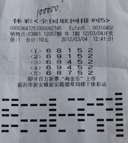随着春季的到来,彩民朋友投注的热情也在增长,中奖喜讯不断,兑奖大厅常有大乐透、排列型玩法、即开彩票的兑奖彩民。近日,又一“排列5”彩民获得大奖10万元!