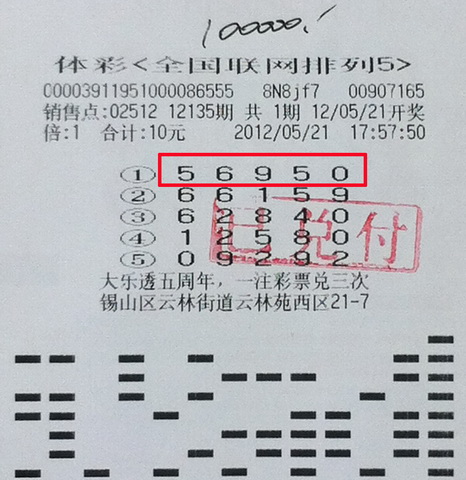 小刘是一位年轻的老彩民,守号是他惯用的方法,多年来的坚持在5月21日给他带来了巨大的回报,一举中得了12135期的“排列5”10万元大奖!说到购彩历史,小刘头头是道,购彩多年,各种玩法均有涉猎,却犹爱小盘玩法,虽然平日也是小奖不断,可是排列5却未见花开,但他始终看好排列5。5月21日晚,他依旧是按照惯例打了已经连续守了一阵子的五组号码,22日早上一看报纸,排列5开出的这组“56950”实在眼熟,掏出彩票一看,正是第一组号码!经过再三确认,小刘很是激动,立刻叫上家人一起直奔体彩中心兑奖。