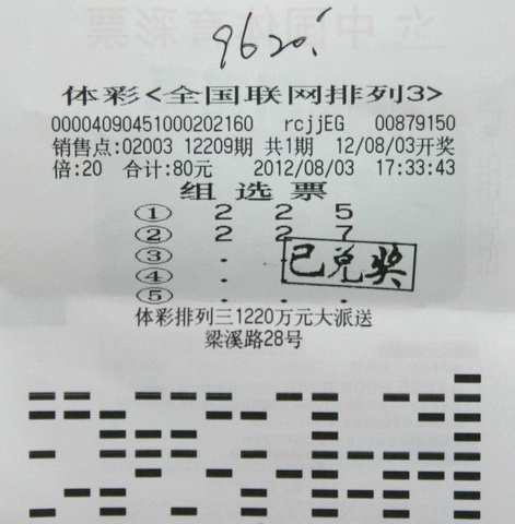 8月6日上午,彩民老杨高高兴兴来到体彩中心领奖,他投注的正是派送活动针对的组选3。他购买的这张彩票是8月3日晚开奖的第12209期,共投注了两注号码、各20倍,其中第2注“227”为当期的开奖号码。派送活动让该彩票由原来的总奖金6400元,一下子翻到了9620元,整整增加了一半的奖金。中奖后,老杨开心地表示,“每注奖金增加了161块,真是太好了,太实惠了。”