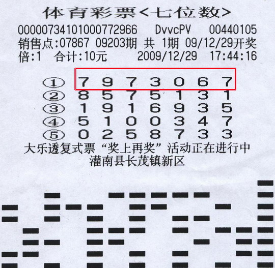 12月29日,因为知道第二天有南钢主场比赛,孙先生特地去站点跟销售员聊了会儿,当天他还是买了5注随机的7位数,其中第一注“7973067”正是当晚的中奖号码。