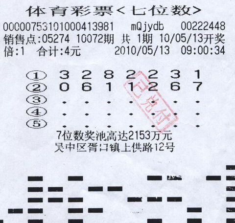 早在5月20日,苏州05274站点的第一个500万已被两位小伙取走,中奖得主叫小马。这和业主回忆非常的相似,只不过当时只兑取了一个500万,而当时记者询问小马是否知道另一个500万时,小马只是说有可能是女朋友买的但随后又否认了说不知道。而到了5月27日中午,小马和母亲一起又出现在省体彩中心兑奖大厅,当看到记者时都有点不好意思了。小马解释道:其实这两个500万都是自己买的,之所以分两次来领奖,就是怕引起媒体的注意,体彩中个500万是常有的事,中1000万可能会引起关注,所以第一次兑奖就和自己的好朋友来了,第二次就带着母亲来了。笔者看到这次的500万大奖票几乎和第一次兑奖的一模一样,只不过购买时间上相差了十几秒,第一张购票时间是2010年5月13日上午9点零分16秒,而本次兑奖彩票的购票时间是9点零分34秒。