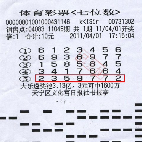 虽然当天是愚人节,可7位数玩法并没有跟大家“开玩笑”,当天晚上该玩法开出的中奖号码是“2359772”,唯一一注特等奖花落常州,正是小周所购彩票上的第5注号码,于是,第一次买彩票的小周就这样实现了无数人求之不得的500万大奖梦。