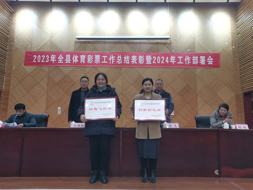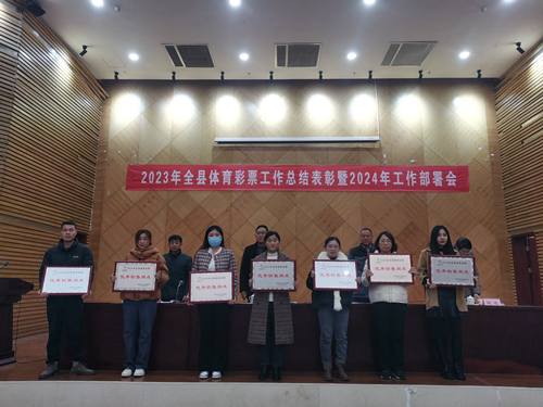 会议对东海县体彩事业发展作出突出贡献的12个体彩销售网点代表进行颁奖,并对2023年东海县体彩工作进行了总结,提出了2024年的工作重点。