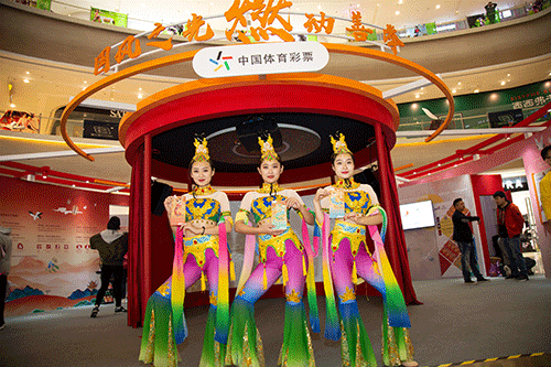 据体彩现场工作人员王先生介绍,飞天敦煌舞是本次活动的特色,从上午至晚间,每天将表演四场。