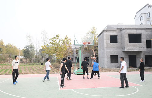 初冬的河南夏邑县孟李庄村,微风徐徐,村里的运动爱好者早早来到全民健身中心开始锻炼,远远地就听到村子里传来的欢笑声、加油声。篮球场上,两支队伍正在激烈地拼抢,四周围观的村民为场上每一次得分报以热烈的掌声和欢呼。一旁的乒乓球台前也聚集了不少村民开心地打球。全民健身中心不时传来的阵阵欢笑和小小的喧嚣,让整个村庄充满活力。