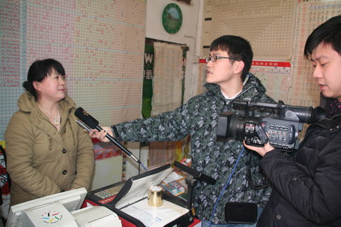 采访期间,来网点的购彩的彩民络绎不绝。销售员告诉我们,从早上开始购彩票的彩民格外的多,彩民们也都纷纷投注起大乐透,希望能够沾着这份喜气为自己的2010带来好运。一位50岁左右的彩民笑哈哈地给我们谈起他的彩经,他最喜欢的是排列3玩法,每天都来网点购买,而且运气也不错,经常中奖,今天看到566万大奖就出在自己身边,也打算买上几注大乐透。他还告诉我们他买彩票就是图个乐子。