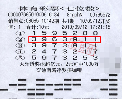 孙女士表示,虽说她的这个投注方式并不算很高明,却经常为她收获一些小奖,所以她一直对有朝一日能中大奖充满信心。果不其然,9月12号开奖的10142期7位数,孙女士凭借“3963911”这组号码终于把梦想已久的500万大奖捧了回去。与此同时,当期孙女士所选的另1注号码“3973911”也中了三等奖,获得300元的奖金。