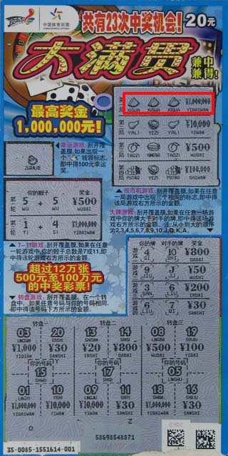 10月12日,一小伙中出常州首注“大满贯”100万大奖,仅隔一月,11月8日,位于常州武进崔桥镇综合市场82号的04769站点再次爆出百万大奖。据销售员介绍,11月6日晚,章先生才第二次到她的站点来买“顶呱刮”,拿过一本新开的“大满贯”就开刮了,还剩下七张的时候,销售员询问是继续刮还是拿奖金,他犹豫了一下,“那就都刮了吧!”没想到,就是这样一个简单的决定,给了章先生一次当百万富翁的机会。章先生刮到最后一张的时候,在第一区的“投币机游戏”第一排,三片西瓜解秋燥,赫然出现的“¥1,000,000”让他脑袋瞬间一片空白,销售员也没亲眼见过百万大奖票,为了保险起见,还拿出即开型IVT兑奖终端设备扫描了一下这张彩票,结果确实显示超出了兑奖权限,这才放下心来,大奖真的就在眼前!