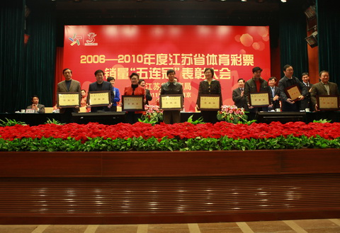 会议对为江苏体彩销量“五连冠”做出突出贡献的集体和个人进行了表彰,各省辖市体育局局长、分管局长、体彩中心主任以及各县(市、区)体育局局长参加了会议。