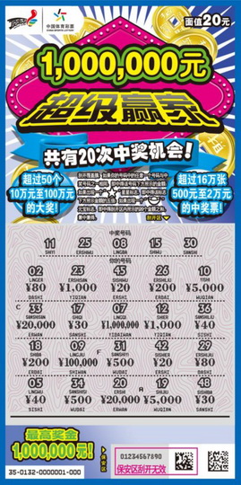 继“金银生辉”之后,体彩即开顶呱刮第二款百万荧光票——“超级赢家”近日将在我省与广大彩友见面。据悉,该票每张20元,共有20次中奖机会,最高奖可达100万元。与此同时,我省还将针对该票种开展相关派送活动。