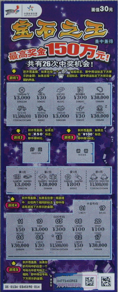 1月15日,苏州一位古稀老人擒获我省首个“宝石之王”最高奖150万元。11月22日,宿迁彩民再擒“宝石之王”150万元大奖,随后,常州一位老彩民接过大奖接力棒,将我省第3个“宝石之王”150万元大奖收入囊中!