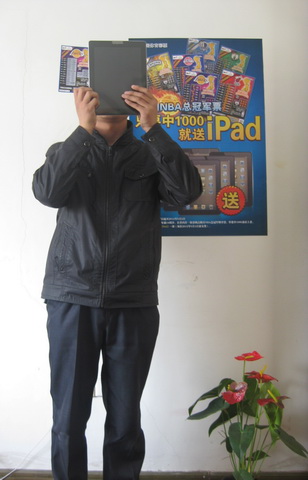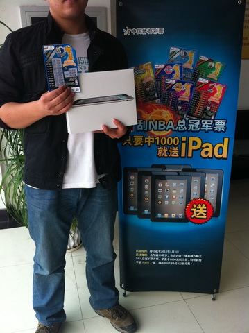 原来,4月9 日下午本来何先生是休息的,后来临时接到电话通知要去单位加班,他出门等车时外面正在下雨,他便走进了体彩站点躲雨顺便刮彩票。何先生买了 5 张“NBA总冠军票”,结果第三张就中了 1000元 。当时他还不敢相信,心里还嘀咕,“不会这么巧吧,加班还能中奖?”在前往体彩中心办理完兑奖手续后,何先生才回过神来,“今天这班加的真值,中了 1000元奖金本来就很开心,还送个这么时尚的iPad,体彩中心这个活动搞得真是实惠!”