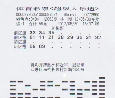 小姜中得当期头奖的彩票是张胆拖票,他告诉记者,自己平时喜欢研究大乐透的中奖号码,从刚开始买大乐透的时候就采用胆拖投注,他说:“我发现胆拖可以大大提高中奖率!”