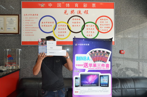 赢取苹果三件套的方法非常简单:即日起至2012年10月21日,凡在我省购买的单张20元NBA即开票中得8000元及以上者,即可获赠苹果产品三件套,一次性将iPhone4s、MacBook和New iPad三大标志性产品抱回家。符合这一活动参与条件的中奖者须在2012年10月22日前,前往省体彩中心兑奖。