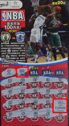记者来到兑奖大厅时,中奖的陈女士正在填写兑奖登记表格,她的老公则站在一旁呵护。有趣的是当记者求证是谁中的奖时,陈女士的老公立马神采奕奕地说道:“我可是买了一本啊,每次都是我来买,她来刮……”听到这话,陈女士一下就停下了笔,俏皮的回答道:“最关键要看是谁刮的,我刮了第三张就中百万大奖啦,你以前可就没中过什么大奖!” 再看看这张NBA百万中奖票也很有意思,所有的“你的号码”全部被刮开,“中奖金额”只有这个百万被刮开,其他金额根本没动,“中奖号码”只刮开前两位,后面三个号码也就没动,这也说明每个人刮奖的方式也不尽相同。据陈女士介绍,她喜欢先将所有的“你的号码”全部刮开,然后把“中奖号码”一个个刮开,和每一个“你的号码”对一遍。当刮到第2个中奖号码“04”时,恰巧你的号码也有个“04”,刮开下面的中奖金额,见证奇迹的时刻出现了…..