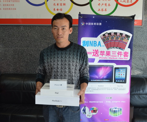 国庆长假刚过,NBA20元票的中奖喜讯仍然不断传来,截止107日,江苏彩民已中得13960NBA特许产品大礼包,为全国最多。而我省独家开展的“中8000送苹果三件套”活动仍在火热进行中。109日中午,江苏体彩兑奖大厅再次迎来了两位NBA20元票“苹果三件套”得主,他们分别是无锡的赵先生以及苏州的陈先生,巧合的是他们所中奖项均为NBA20元票的8000元“满堂彩”。